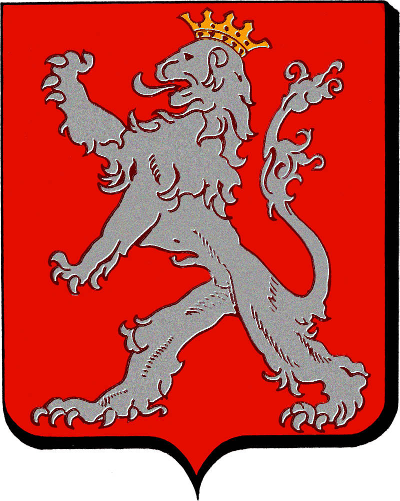 D'argent à quatre fasces de gueules au lion de sable couronné, armé, et lampassé d'or brochant sur le tout.